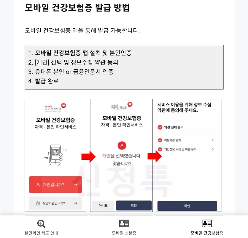 موبائل آئی ڈی کی ویب سائٹ کے ذریعے آسانی سے موبائل آئی ڈی اور ہیلتھ انشورنس کارڈ حاصل کریں اور غیر متوقع طور پر ہسپتال جانے پر بھی بغیر شناختی کارڈ کے آسانی سے علاج حاصل کریں۔ اگر آپ پہلے سے تیاری کرتے ہیں تو آپ زیادہ محفوظ محسوس کر سکتے ہیں۔