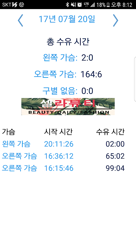 모유 수유를 기록하고 일주일 한달 단위로 통계를 볼수 있습니다.