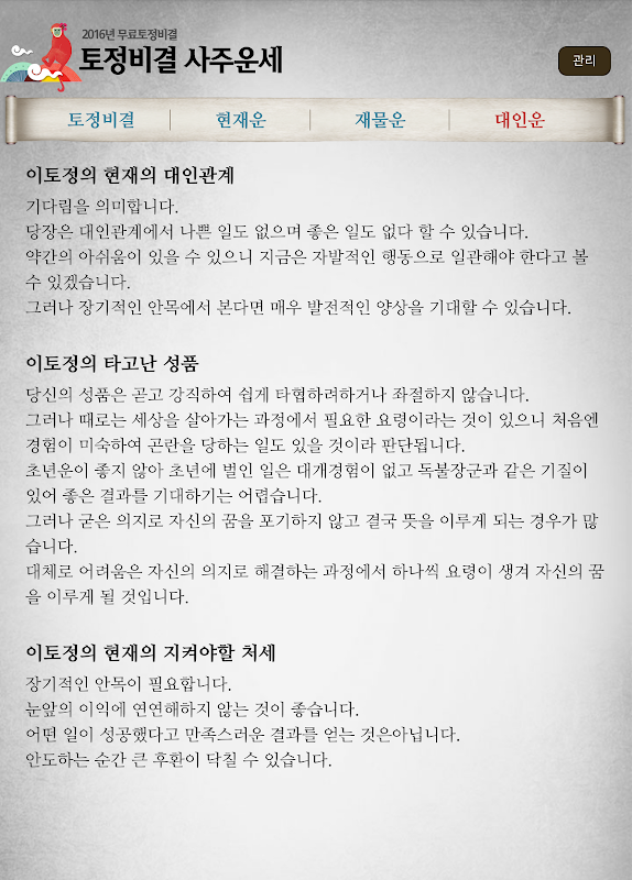 무료운세 토정비결 사주운세-2018년 운세,사주,궁합 1.6