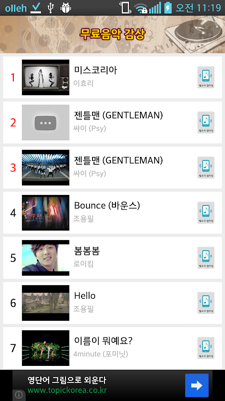 매일매일 무료로 최신음악, 뮤직비디오를 감상할 수 있습니다.