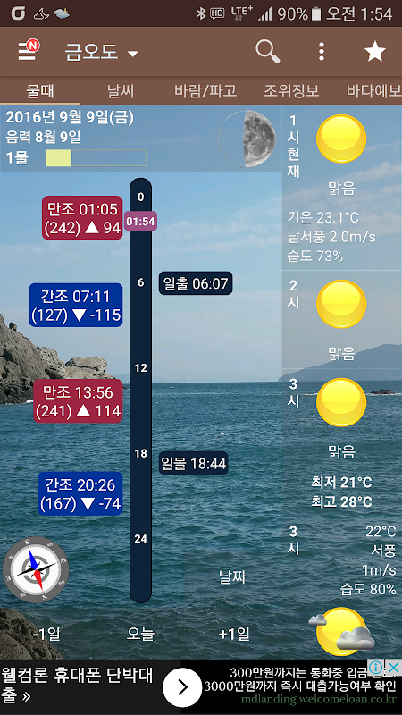 کے پرانے ورژن 물때와날씨(조석예보, 물때표, 바다날씨, 바다낚시)