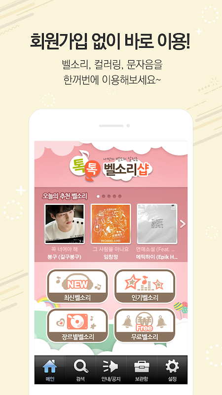 - 맛보기로 벨소리무료 카톡알림음무료로 제공합니다.