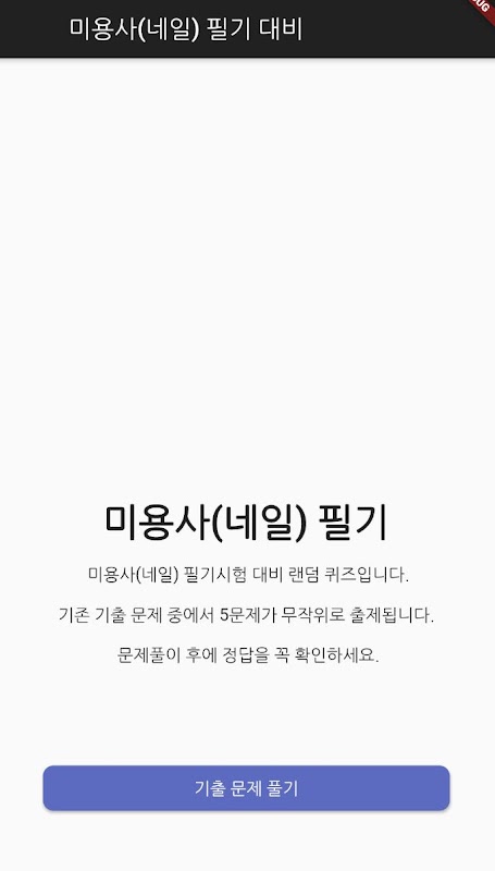 미용사(네일) 기출문제를 랜덤으로 풀어볼 수 있는 어플입니다.