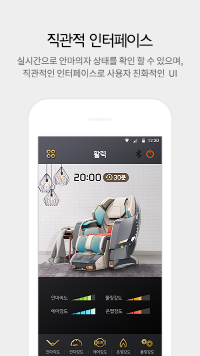 مساج کرسی کی حیثیت، جیسے مساج کی شدت اور مقام، موبائل پر آسانی سے تبدیل کریں۔