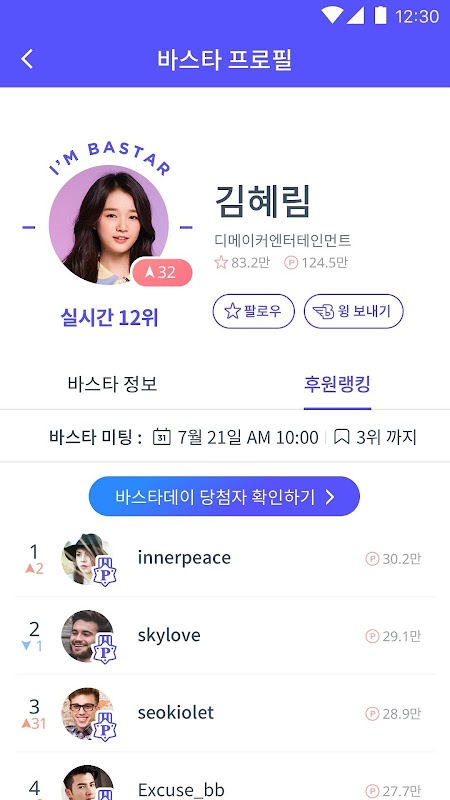 매력적인 바스타들의 순위가 실시간, 일간, 주간, 월간별로 집계되어 결정 됩니다.