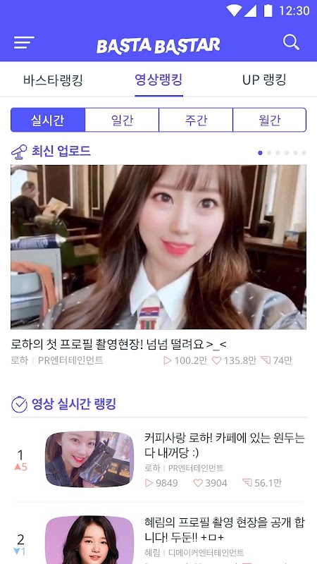 바스타들의 영상 순위가 실시간, 일간, 주간, 월간별로 집계되어 결정 됩니다.