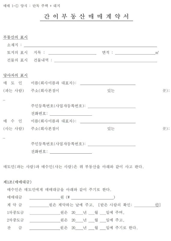 -. 매매계약서(단독주택)간이하게작성하는경우