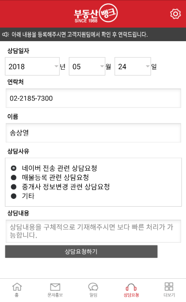 네이버 매물전송 현황, 부동산뱅크 고객지원센터의 알림 등을 실시간으로 확인하실 수 있어 회원님의 궁금증을 바로바로 해결해드립니다.