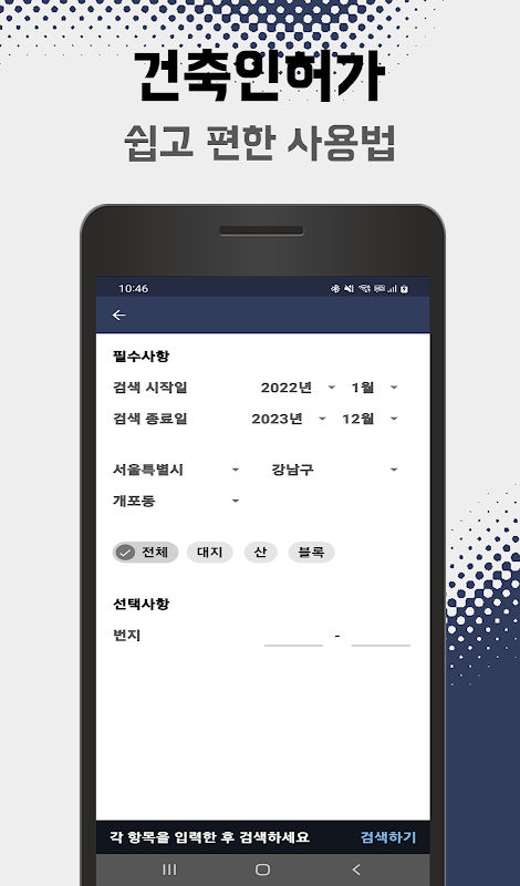 آپ زمین، انفراسٹرکچر اور ٹرانسپورٹ کے بلڈنگ ہب کی وزارت کی طرف سے فراہم کردہ بلڈنگ پرمٹ انفارمیشن سروس سے براہ راست لنک کر کے اصل وقت میں سب سے درست اور قابل اعتماد بلڈنگ پرمٹ سٹیٹس حاصل کر سکتے ہیں۔ قابل اعتماد ڈیٹا کی بنیاد پر عمارت کی معلومات کو اعتماد کے ساتھ چیک کریں۔ ② لاگ ان کیے بغیر، صرف ایڈریس کے ساتھ آسانی سے دیکھنا