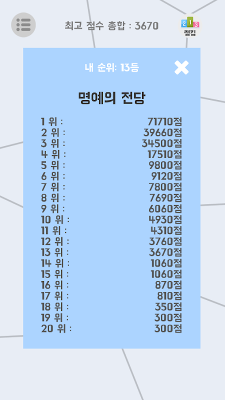 다른 사람들과 순위 경쟁도 즐길 수 있습니다!