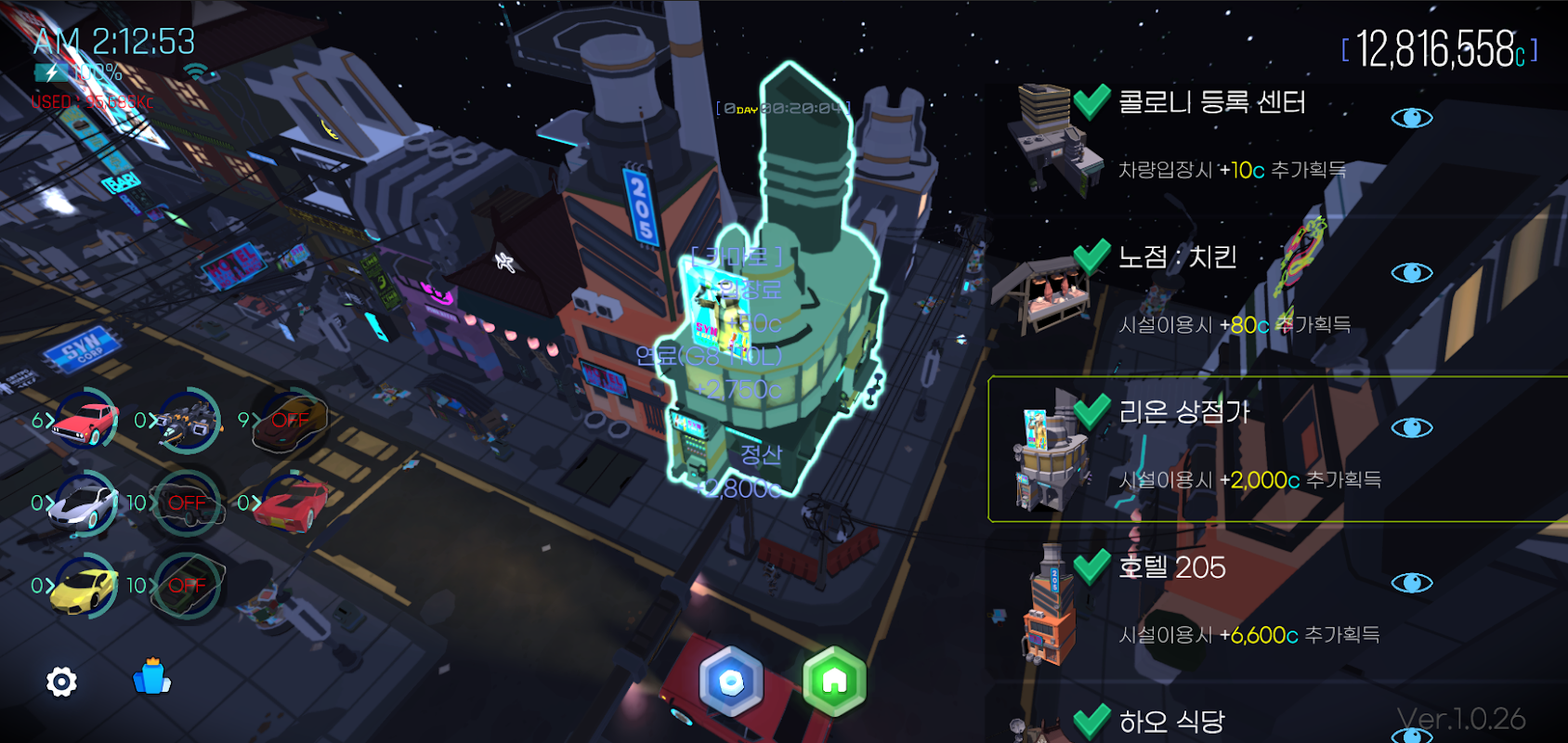 - 더 많은 건물을 지어 사이버펑크 도시를 만들어보세요