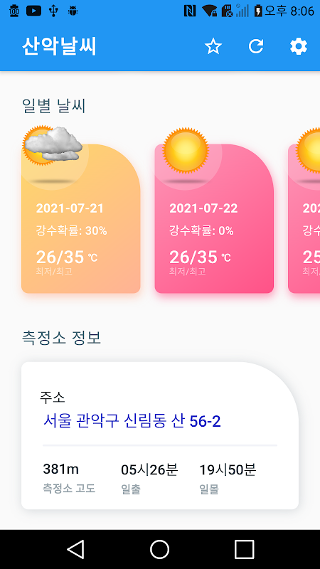 کوریا میں مختلف پہاڑوں کے لیے ریئل ٹائم موسم اور پیشن گوئی فراہم کرتا ہے۔