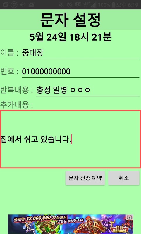 국내최초 문자 점호 어플! 상근예비역과 같이 주기적으로 문자를 보내는 일이 있을 때를 위한 어플