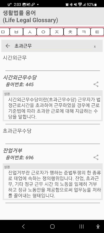 زندہ قانونی شرائط وزارت انصاف کا ڈیٹا فراہم کیا گیا، آف لائن، حروف تہجی کی درجہ بندی، اصطلاح کی تلاش، بک مارک فنکشن