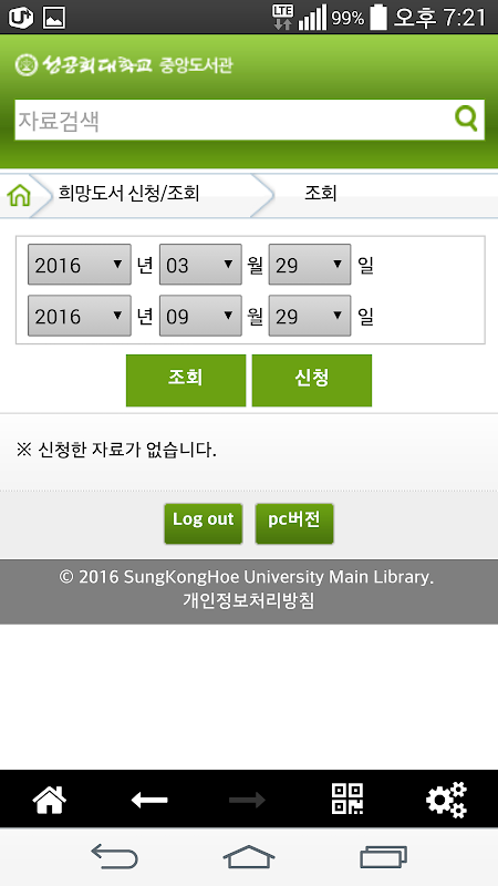 Sungkonghoe Library of information retrieval, a program that provides the libraries available information, announcements, such as library services. SKHU Library