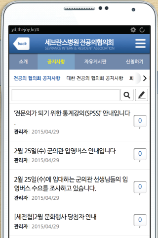 세브란스 병원 전공의를 위한 어플입니다. 게시판, 설문조사, 정보교류등의 기능을 담고 있습니다.