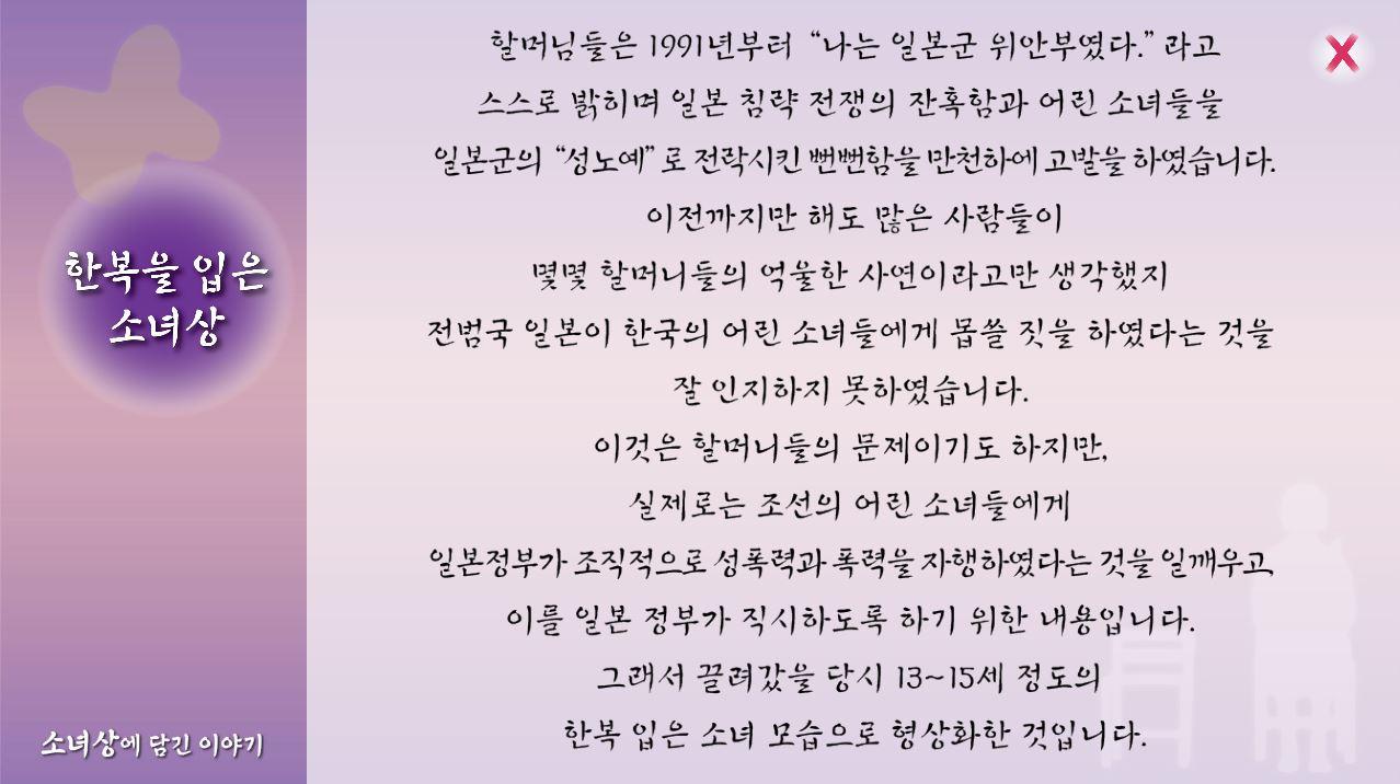 본 소녀상AR은 전국에 위치한 평화의 소녀상 101기를 대상으로 제작하였습니다.