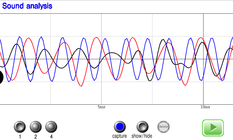 그래프 아래 시간간격을 조절할 수 있고, 시간간격을 이용하면 발생한 음파의 진동수도 계산해 낼 수 있다.