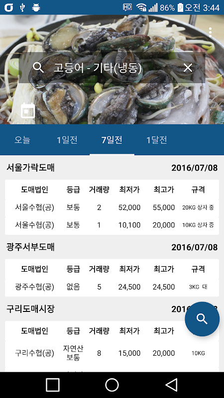 수산물 도매시장/공판장 경매가격정보 - 일자별 정보제공 APK معلومات