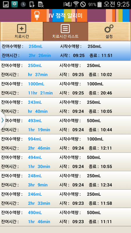 타이머를 등록하면 수액치료가 끝나는 시간에 맞춰 알람이 울리도록 만들 수 있습니다.