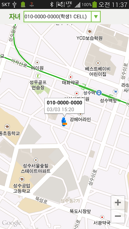 : 응급호출시 사용자의 실시간 위치 정보가 보호자에게 전송