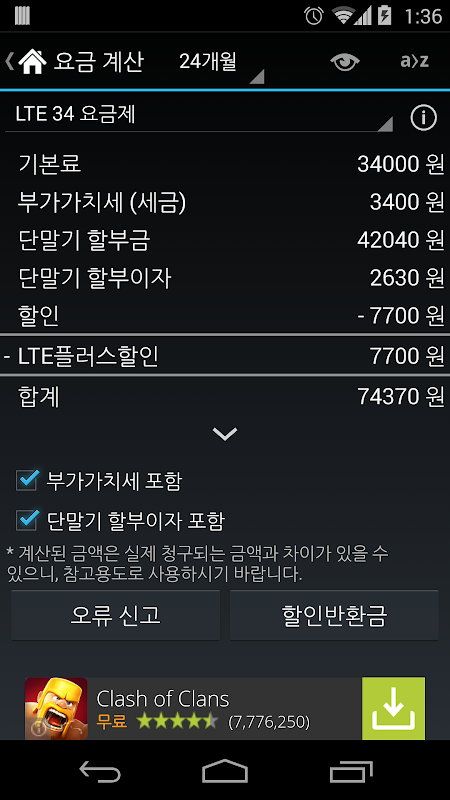 스마트폰 요금계산기 3.9.12.170625