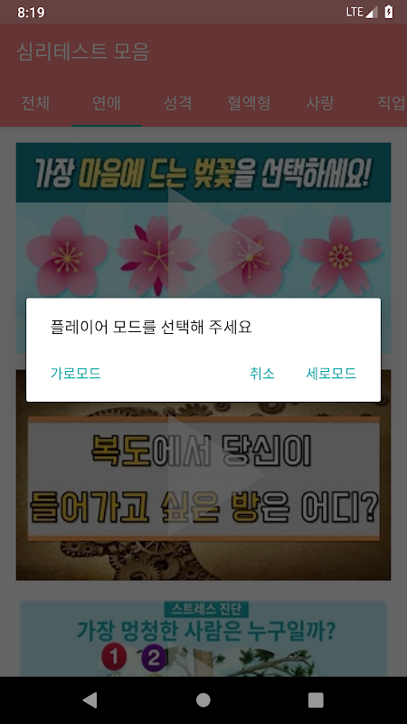 연애, 성격, 혈액형별, 사랑, 직업, 그림, 결혼, 동물, 색깔, 전생, 게임