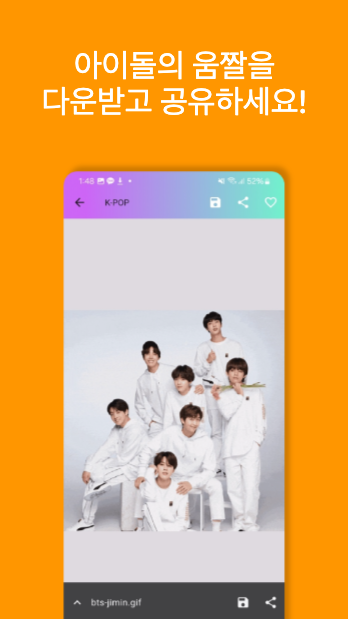 Idol GIF ایپ ایک ایسی ایپ ہے جو آپ کو K-POP بتوں کے مختلف GIFs کو آسانی سے تلاش کرنے، محفوظ کرنے اور ان کا اشتراک کرنے کی اجازت دیتی ہے۔