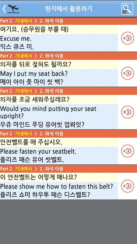 출국 및 기내 정보 / 기내 필수 표현 / 자리 찾기 / 좌석 이용