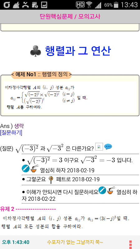 5. 본 어플은 질문과댓글에서 수식을 자유롭게 표현 할 수 있습니다.