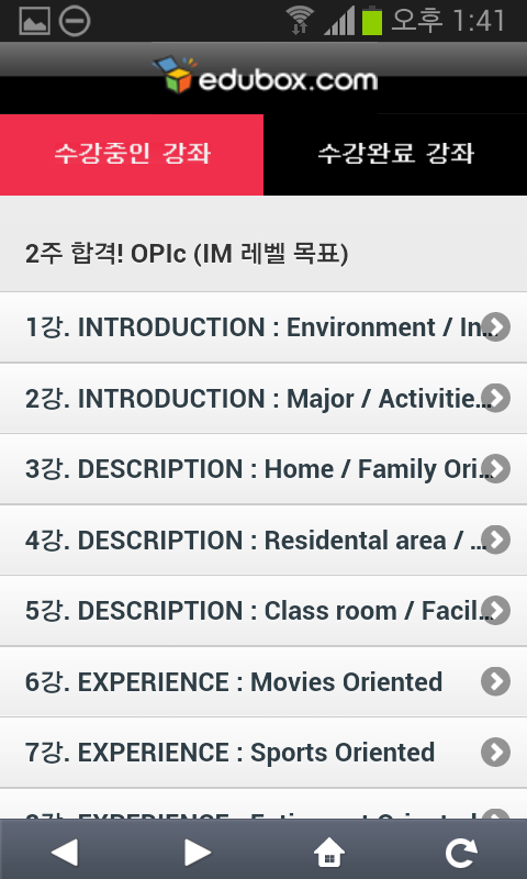 스마트폰, 테블릿PC, 에듀박스 영어학습기에서 영어강좌 학습을 위한 접속을 할 수 있는 어플입니다.