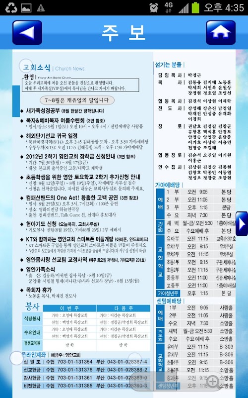 ㅇ 메뉴 : 목사님 설교(동영상,MP3), QT, 목장, 게시판 등으로 구성 되어 있습니다.