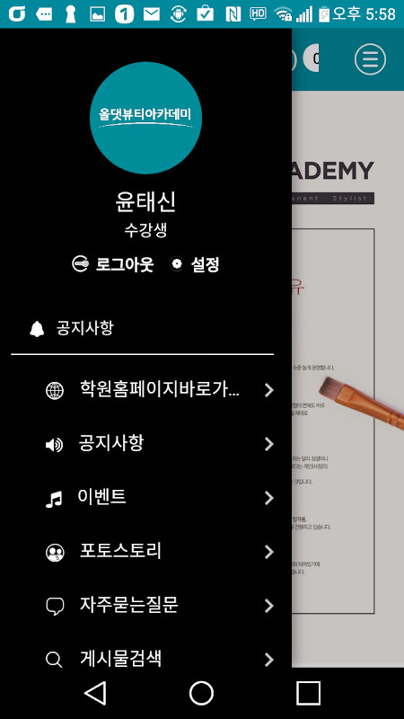 올댓뷰티아카데미 수강생분들께 더 좋은 서비스 제공을 위해 제작된 어플리케이션입니다.