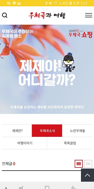 우체국이 추천하는 지역별 테마별 여행정보 및 여행정보를 찾을 수 있는 여행정보제공앱
