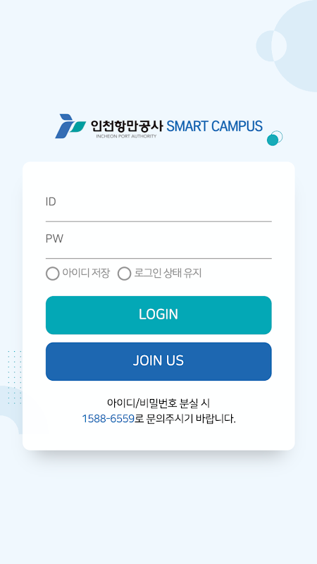 PC환경의 인천항만공사 스마트캠퍼스(http://icpa.hunet.co.kr)의 아이디와 비밀번호로 로그인 가능하며, 주요 서비스를 본 모바일 앱에서도 사용하실 수 있습니다.