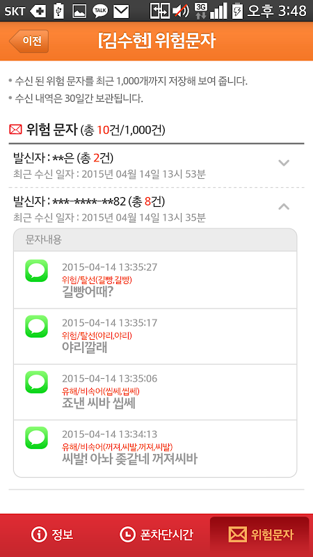 4. 학교 폭력 감지 - 학교 폭력 의심 문자 수신 시 부모님께 알림