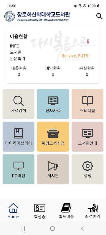 Presbyterian University and Theological Seminary (Jangsin University) اینڈرائیڈ کے لیے ایک موبائل ایپلی کیشن ہے جو آپ کو لائبریری میں کتابوں کی معلومات، قرض کی معلومات، اور مطلوبہ کتابوں کے لیے درخواست دینے کی اجازت دیتی ہے۔
