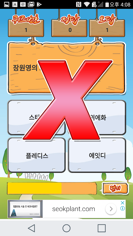 첫 화면에서 시작하기를 터치하시고 다음 화면에 나타난 "Go"를 터치하면 퀴즈 풀기가 시작됩니다. 정답과 오답이 될때마다 "O"와 "X"가 나오는데 이를 터치해야 다음 문제로 넘어갑니다.