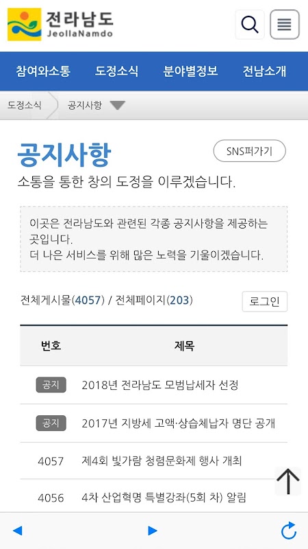 전라남도청 홈페이지에서 서비스 되는 정보를 모바일로 이용할 수 있는 어플리케이션입니다.