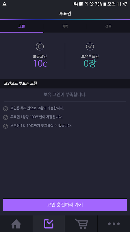 ◈ 코인 및 투표 관련 문의는 충전소 내 ‘고객센터’를 이용해주시기 바랍니다.
