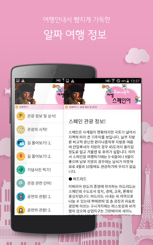 ▶해외 여행자를 위한! 도서 출판 신나라의 여행용 회화책을 어플로 탄생 ▶초간편 기본회화 6가지,각 상황에 따른 챕터내용수록 ▶스페인어음원지원