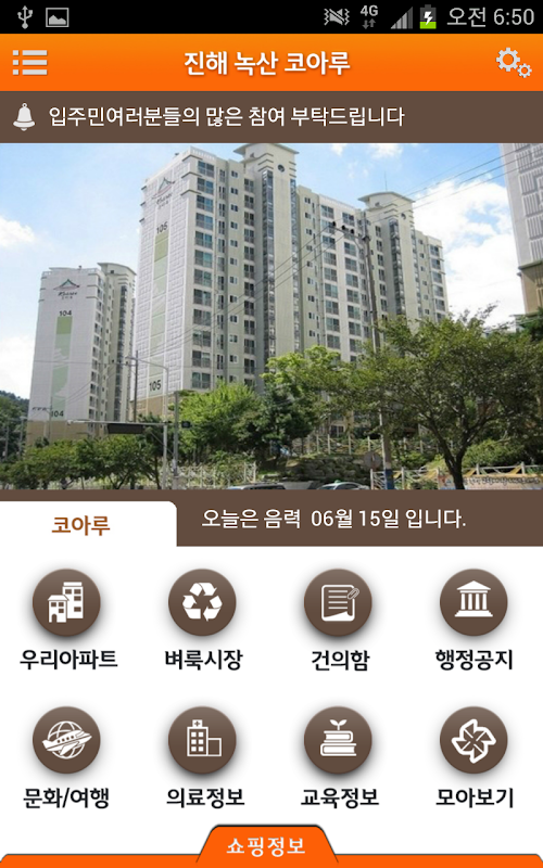 창원시 진해구 에 위치한 "코아루" 아파트 어플입니다. v2