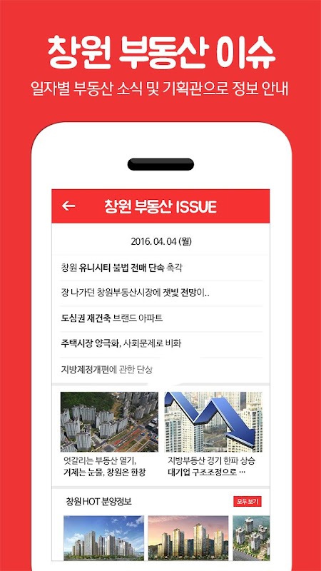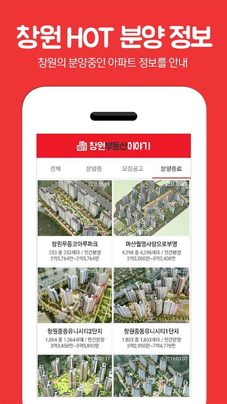 창원 아파트, 원룸, 오피스텔, 호텔, 상가 등 전체적인 부동산 정보와 흐름 안내 앱
