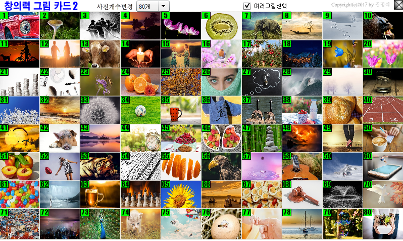 최대 80장까지 화면에 나타나게 할 수 있고, 여러장을 선택할 수도 있다.