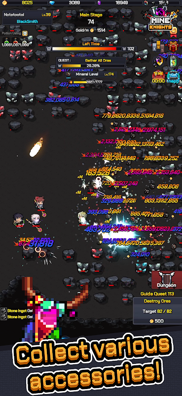 کانوں میں ایسک کو تباہ کرنے سے آپ کو معدنیات ملیں گی۔ آپ کانوں میں جتنی گہرائی میں جائیں گے، اتنے ہی بہتر معدنیات آپ حاصل کر سکتے ہیں! سب سے طاقتور آلات حاصل کرنے کے لیے ان معدنیات کا استعمال کریں۔ اسے ابھی آزمائیں!