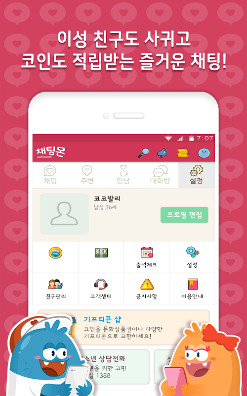 기존 어플의 복잡한 기능을 없애고 채팅에만 집중한 채팅몬에서 채팅하고 데이트 하세요.