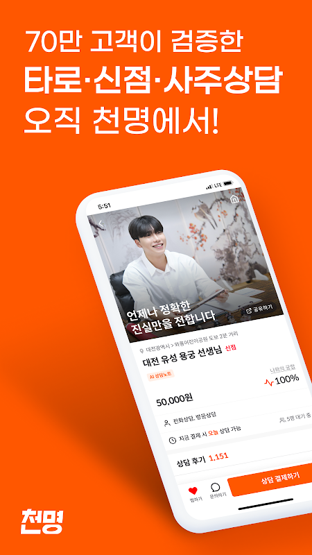 천명 - 검증된 타로, 신점, 사주, 운세 상담 추천 2.1.1