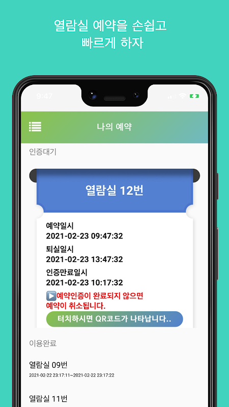 چیونگم یونیورسٹی کی لائبریری موبائل سیٹ بکنگ کا نظام۔
