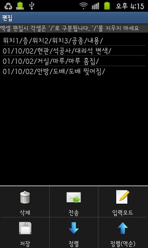 파일을 편집 모드로 열면 하자 완료 여부, 재 보수 필요 등을 체크하여 관리 할 수 있습니다.
