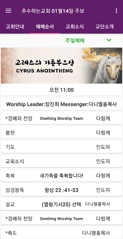 군산 추수하는교회 스마트주보앱입니다.